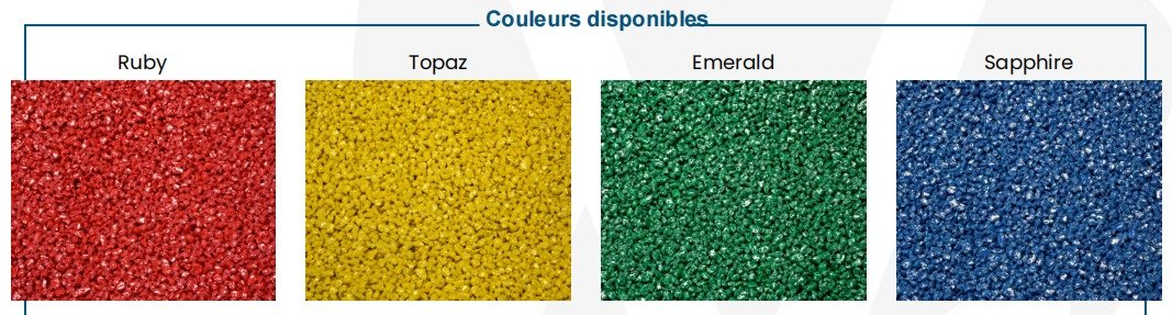 EPDM : Une référence supplémentaire dans le domaine des revêtements de sols extérieurs. Résilience avérée face aux agressions, il résiste remarquablement aux rayons UV, à l’ozone et à de vastes plages de températures, allant du très froid au très chaud. L’EPDM offre également une élasticité qui lui permet d’épouser parfaitement les formes et aspérités des surfaces à recouvrir.